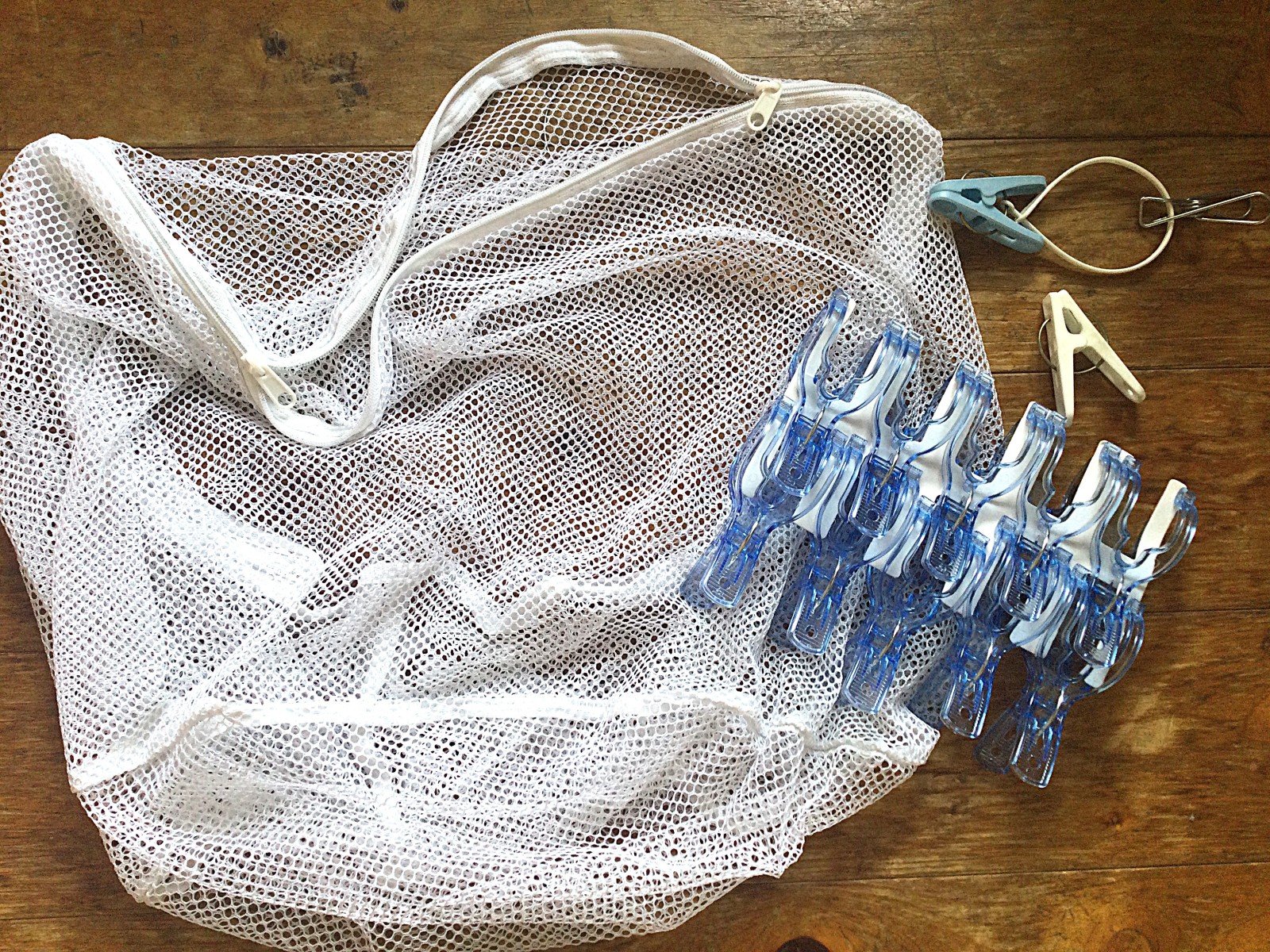 ファスナーが壊れた洗濯ネットは、バラバラになりがちな洗濯ばさみの収納として活用するのにぴったりです。