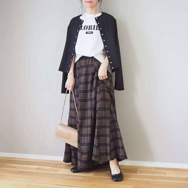 統一感が出るうえにチェック柄スカートの存在感が引き立つので、参考にしてみてくださいね♪