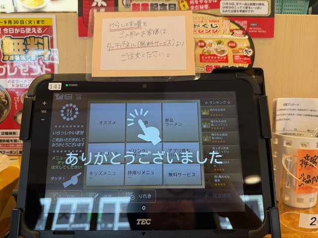 1号線下鳥羽店では、DX(デジタルトランスフォーメーション)も進んでおり、タブレットでの注文、自動配膳機、自動支払い機も設置されています。