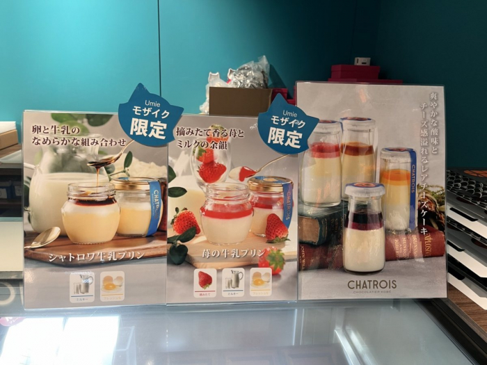 焼き菓子だけでなく、モザイク店限定の冷蔵スイーツ「牛乳プリン」も販売されていました。限定商品ならではの特別感もあり、訪れたらぜひチェックしたい一品です。