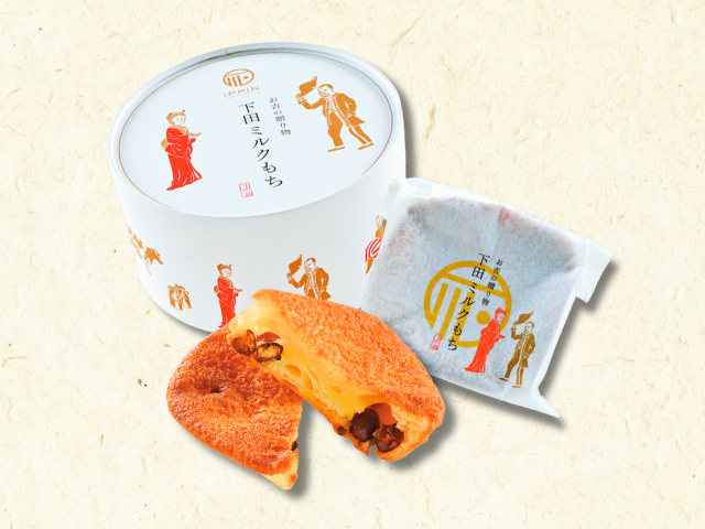 下田の歴史をモチーフに3種のミルクを使用した香り豊かなお菓子。モチモチ生地に良いアクセントになった大納言あずきが絶品です♪