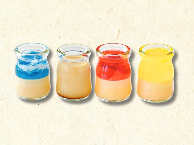 とろとろやわらかな2層プリン!伊豆ならではのニューサマーオレンジを使ったジュレや伊豆の空をイメージしたスカイブルーなど見た目も鮮やかでもらって嬉しいスイーツです♪