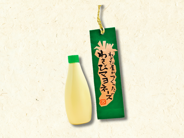 わさび屋が作る本気のわさびマヨ!1995年の発売から人気の看板商品わさびがしっかり効いているのでフライ、カルパッチョにもぴったりです◎