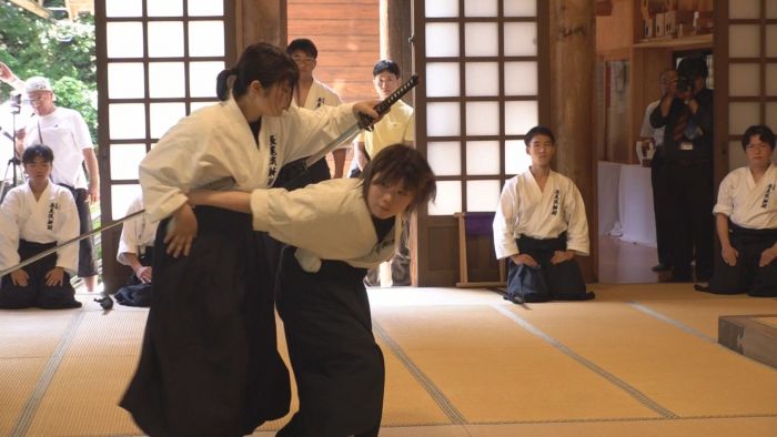 祭典のあとは、金沢工業大学の学生による謙信ゆかりの「正伝長尾流躰術」の演武や、市内の団体による詩吟と剣詩舞が奉納されました。