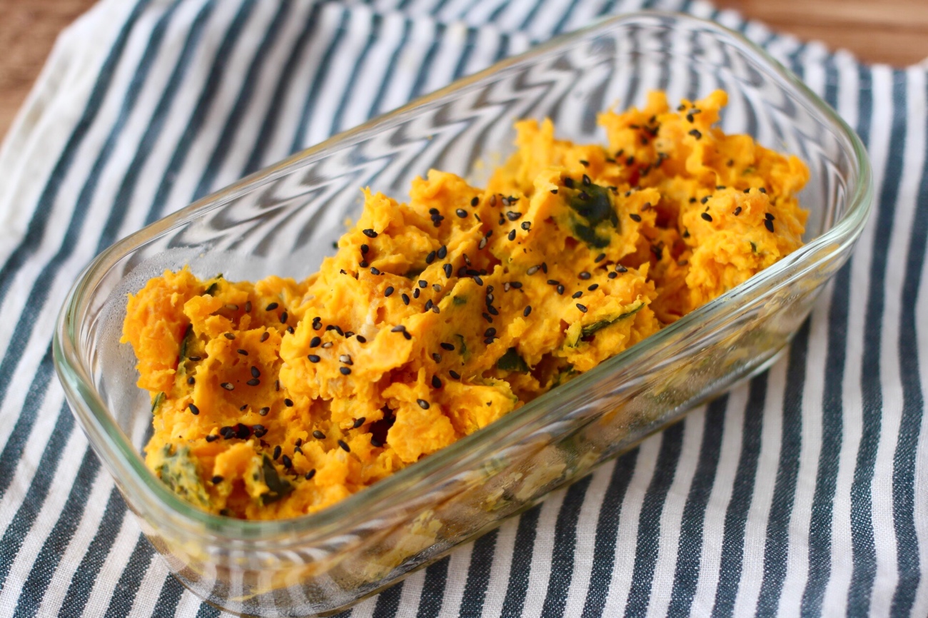 「ホクホクおいしいかぼちゃを、みそとマヨネーズでシンプルに味つけしたサラダです。電子レンジを使うので作り方はとてもカンタン! 和食・洋食にも合い、お弁当の彩りにも活躍してくれる作り置きレシピです」