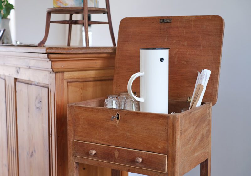 家具や調度品は福岡にあるいくつかのアンティークで揃えたものが中心です。「嬉野の『RAKUYA』の前身となる店を営んでいた母が骨董好きだったこともあり、自然と古いものがもつ味わいを好むようになりました」と話す田中さんのセンスはお母さまから受け継がれたもののようですね。店内で使われているもののすべてが魅力的で、「これはどちらのものですか?」と質問攻めにしてしまいました。