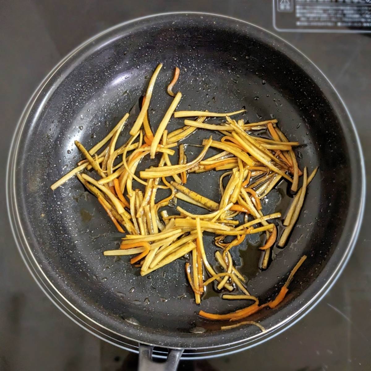 「すっぱ炒め」というのが気になり、ごぼうとにんじんの炒め物に挑戦♪ レシピ引用元:https://life.ja-group.jp/recipe/detail?id=273