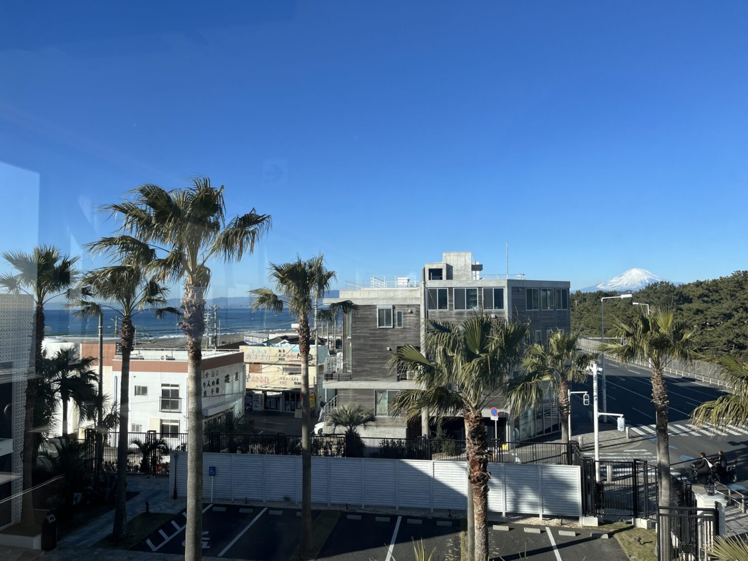 山側の窓からは緑豊かな木々の向こうに飛ぶトンビや、江の島と富士山、両方の絶景を楽しむことができます。