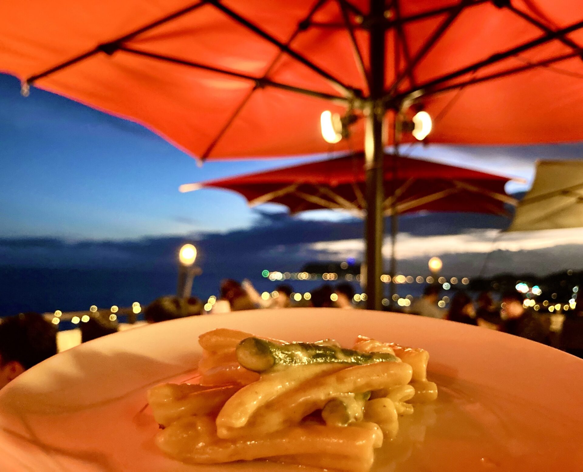 鎌倉・七里ヶ浜の海沿いに佇む「Amalfi DELLA SERA」は、夕陽から夜景へと移り変わる壮大な海と空のグラデーションが楽しめる絶景カジュアルイタリアンです。