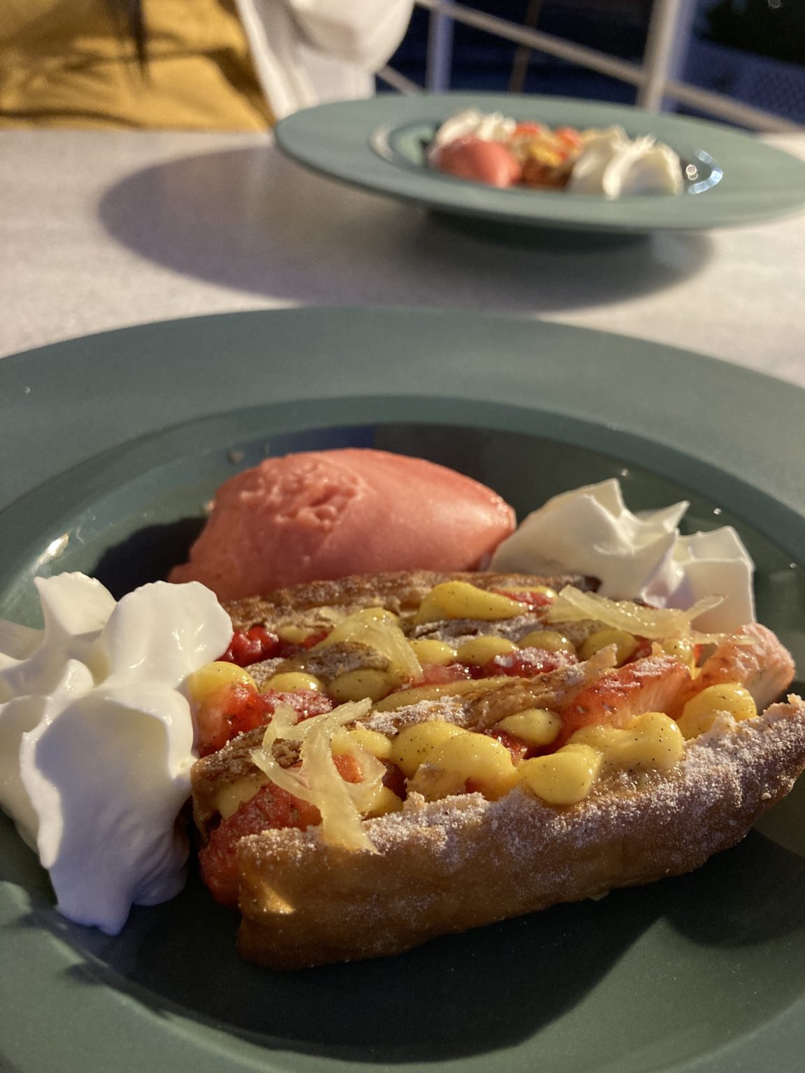 名物の「トロピカルフレンチトースト」は、地元の食材を使ったこだわりの逸品で、外はカリッと中はふんわり。