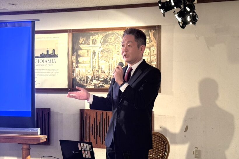 発起人としての想いを語る東邦産業株式会社(新潟市中央区)の五十嵐悠介代表取締役社長