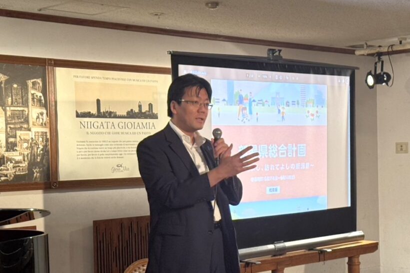 第1回では、新潟県総務部長の越中隆広氏が登壇。県が進める「新潟県総合計画(2025~2032年)」をもとに、長期的な人口ビジョンを説明した。