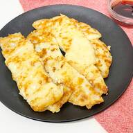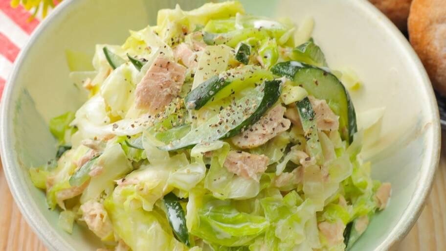 ① 鶏むね肉はそぎ切りにし、塩コショウ(分量外、適量)をかけて片栗粉をまぶす。キャベツはざく切りにする。