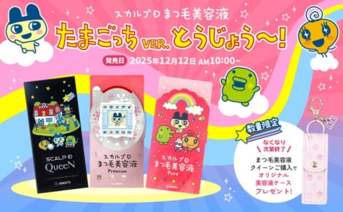 「スカルプDまつ毛美容液」と「たまごっち」のコラボ商品が2025年12月12日(金)より登場します。3種類のまつ毛美容液がたまごっちデザインの限定パッケージで発売され、楽天では12月4日(木)より先行予約受付を開始します。商品の詳細や購入方法を詳しく紹介しますので、ぜひ参考にしてください。