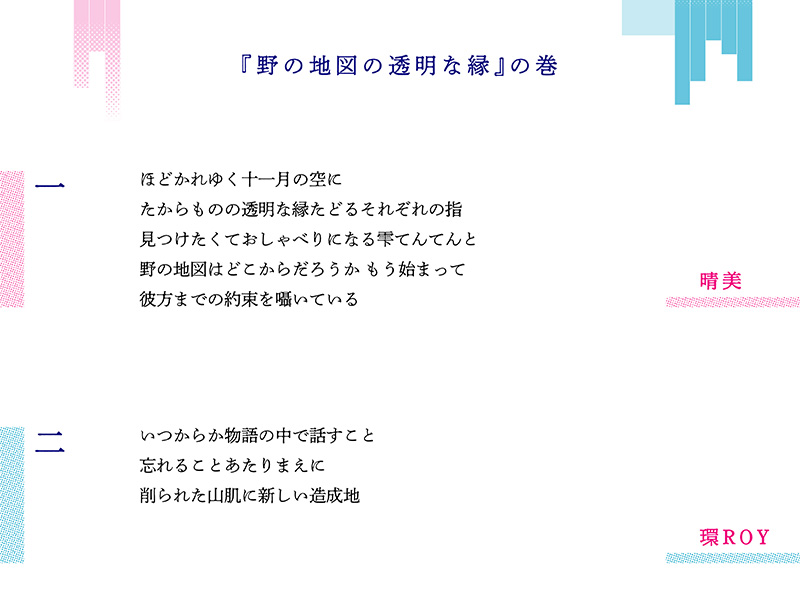 静岡新聞論説委員がお届けするアートやカルチャーに関するコラム。今回は11月6~8日に静岡市駿河区のグランシップで創作が行われた「2025年しずおか連詩の会」の作品「『野の地図の透明な縁』の巻」を掲載する。