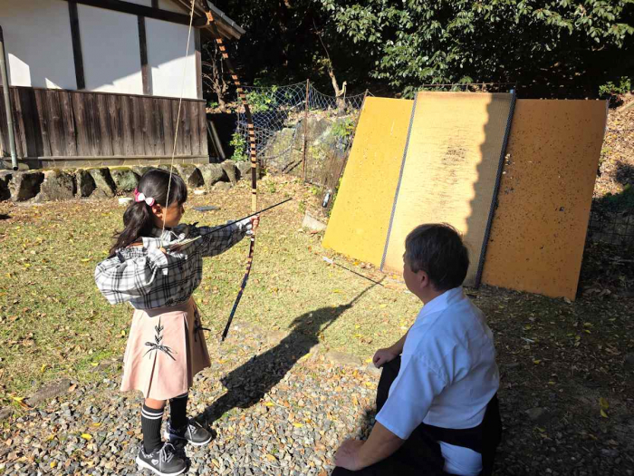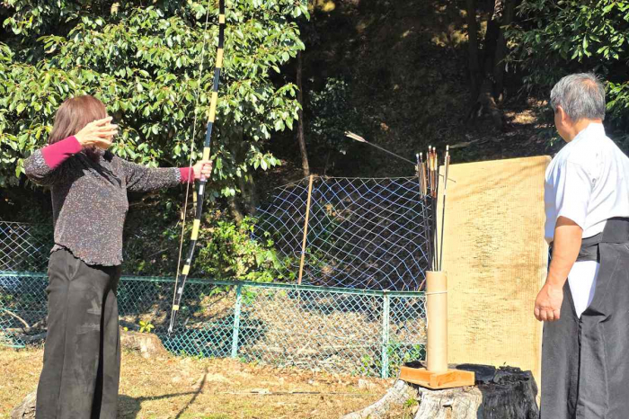 体験出来る弓矢の本数は10本で一本一本に真剣に矢を射る様子を静かに見守ります。