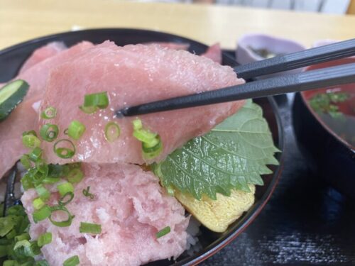 その日に市場で仕入れた新鮮な魚を使っているので、毎日海鮮丼の内容が変わります。なお、鮮度重視なので持ち帰りはありません。