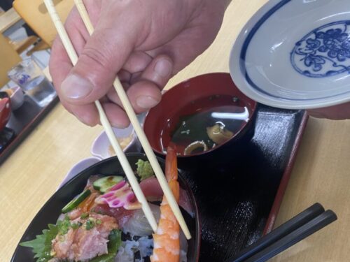 塩で味わった後は、贅沢に醤油をまわしかけていただきます。 どの魚も新鮮そのもので、幸せって海鮮丼の形をしているんだなと思いました。