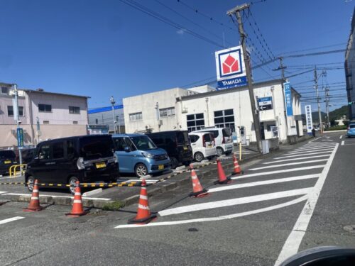 ヤマダ電機とラウンドワンの、道路を挟んだ向かい側に肥後銀行のコインパーキングがあります。②田崎市場内無料駐車場