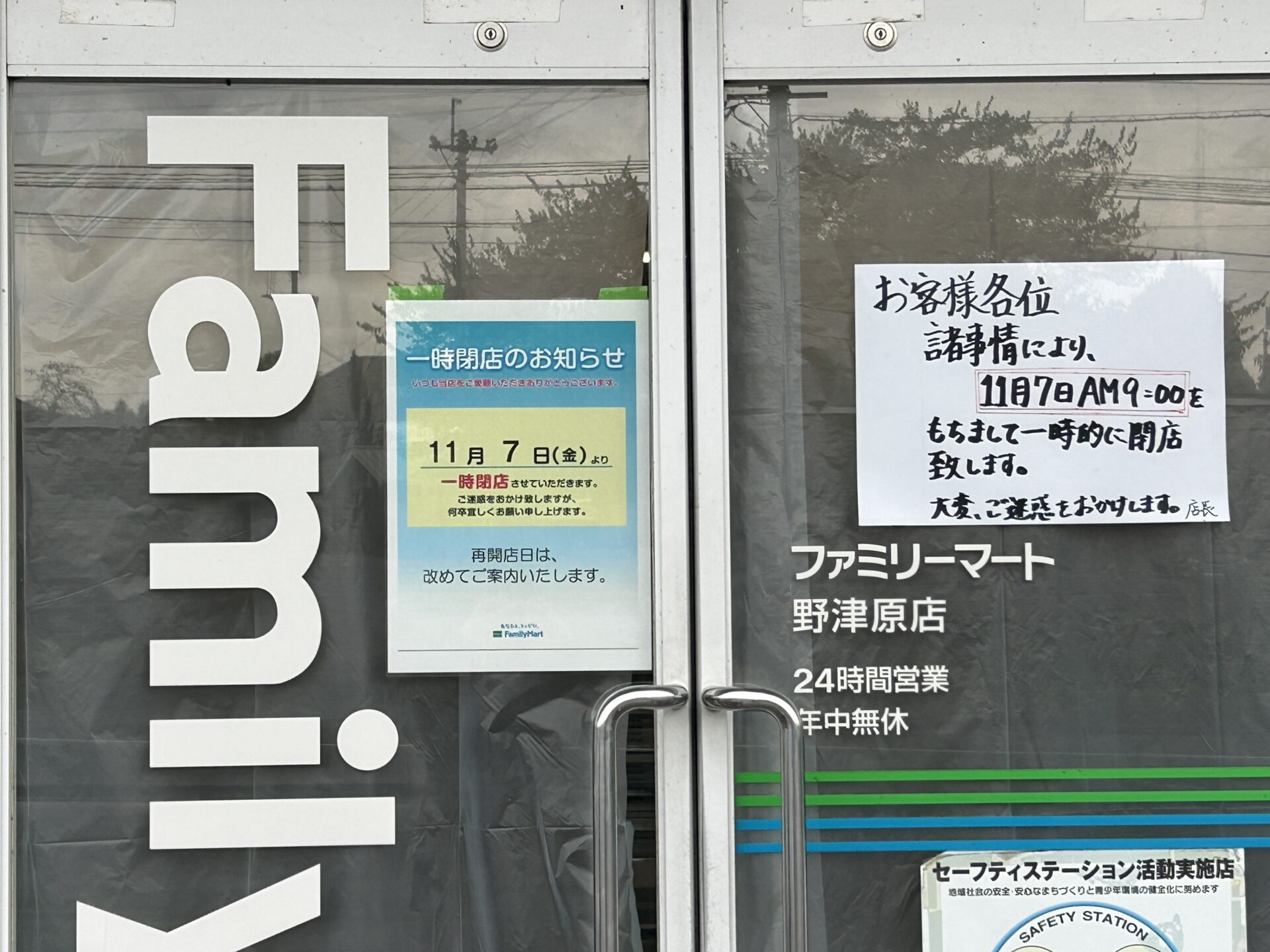 大分市野津原の『ファミリーマート野津原店』が臨時休業していました。