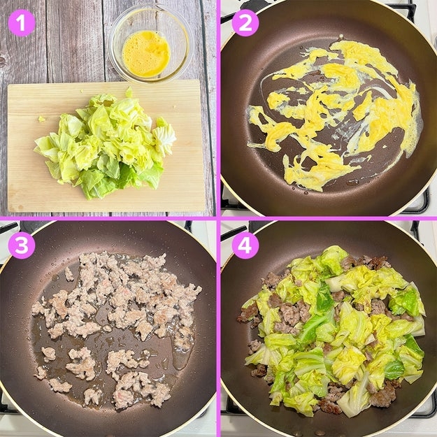 ④ ③に①のキャベツを入れ、しんなりするまで炒めたら②と【A】を加え焼き絡めたら、完成!