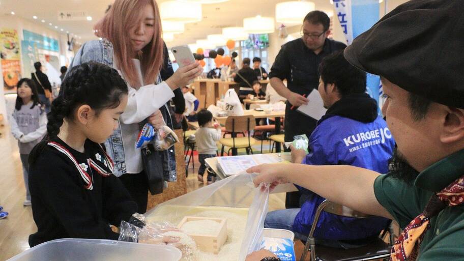 炊き立て新米のおむすびづくりなど、楽しい体験ブースもありますよ。