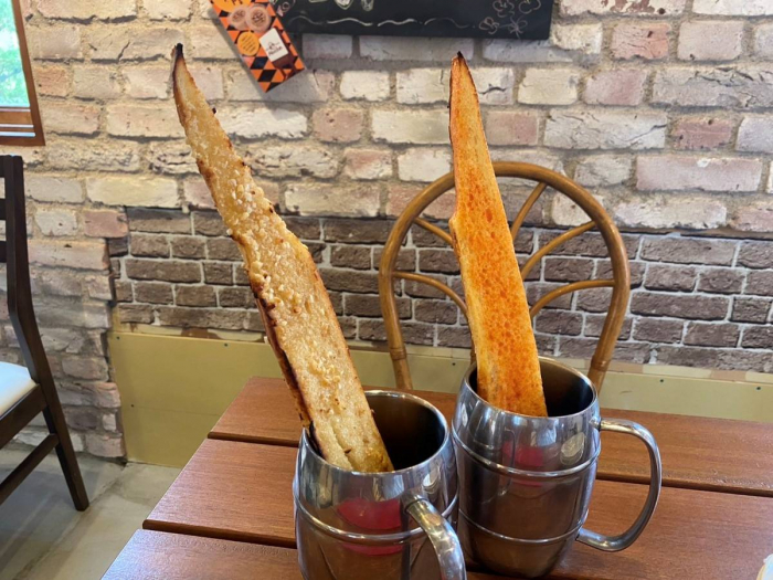 再始動にあたってモーニングやカフェメニューの充実を図り、アーモンドバターで有名な『カフェ・ド・ムッシュ』と提携。アーモンドバターを使ったメニューが提供されています。