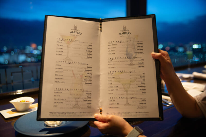 「Night View Hour Plan(ナイトビューアワープラン)」〜マートレットの「夜色‐ヨルイロ‐」とともに〜は、アルコールやモクテル(ノンアルコールカクテル)の飲み放題+ホテルレストランの和・洋・中それぞれの料理長が腕を振るうお料理のコースが付いた特別なプラン。特に、女性同士の集まりや若いカップルに人気で、毎月100組を超える予約が入る人気のプランになっているんです!