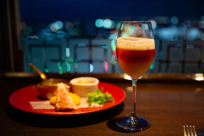 気づけば外はすっかり暗くなり、窓の外にはきらめく夜景が広がっています。さっきはまた違う表情を見せるその景色は、まるで今夜のご褒美。グラスを片手に眺めれば、会話も自然と弾み、時間の流れさえ忘れてしまいそう――。