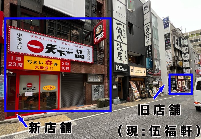 天一が西新宿から撤退 → その場所に伍福軒がオープン → 約4カ月後、伍福軒のすぐ近くに天一が再びオープン