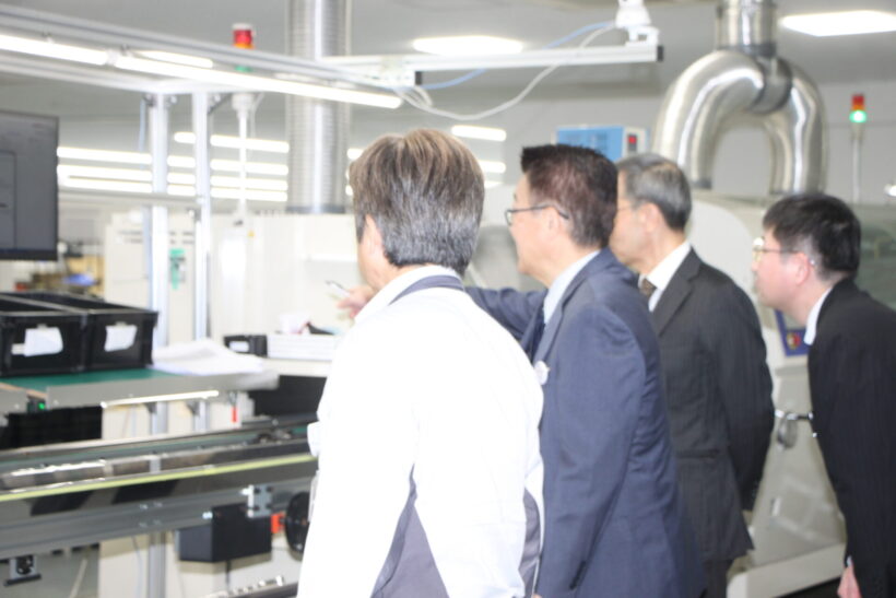 DX化が進む新潟電子工業の工場内を視察する福岡局長ら(写真右から二人目)