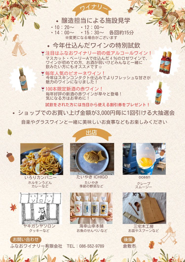 【倉敷市】【11/23(日)開催】ふなおワイナリー ワインと音楽のまつり ~ ワイン片手に音楽を聴きながら、おいしい料理やスイーツを