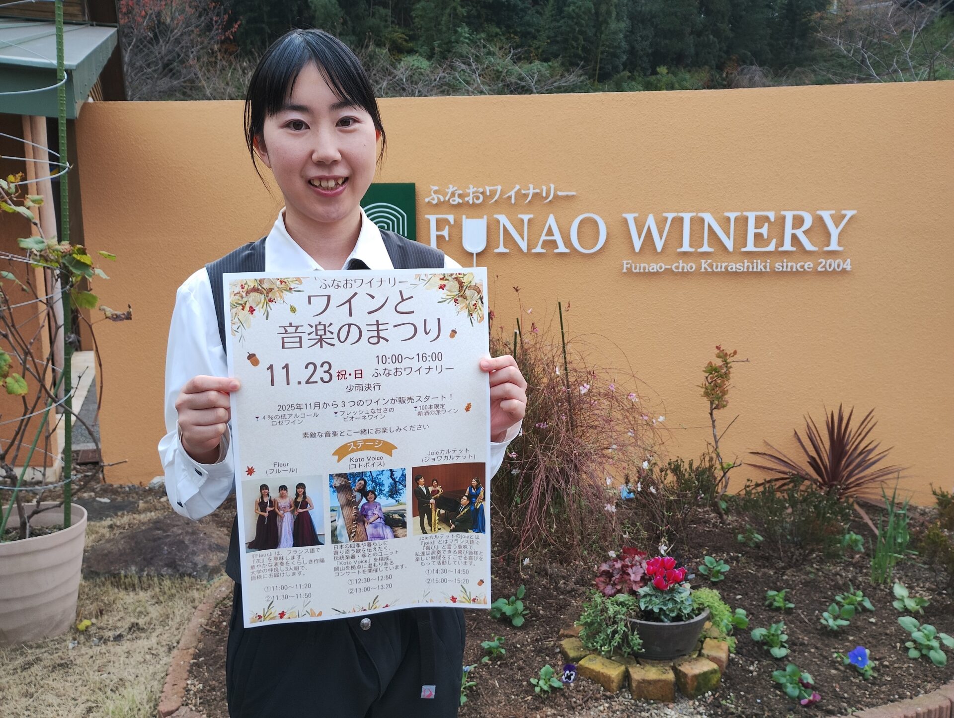 「ワインと音楽のまつり」を企画した、ふなおワイナリー有限会社 広報担当の宗海ナミ(そうかい なみ)さんに話を聞きました。