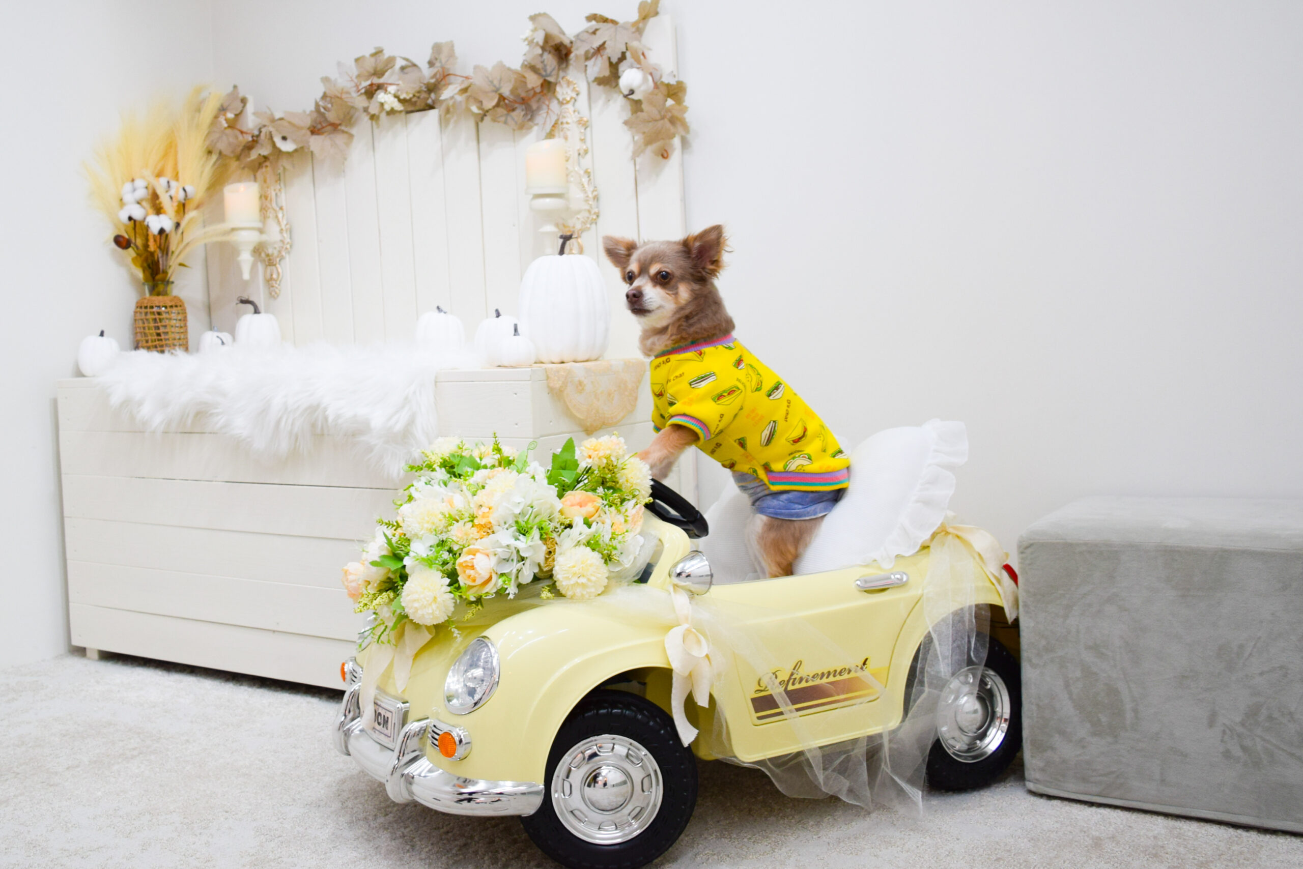 店内には、季節ごとにテーマが変わるおしゃれなセルフフォトブースを常設。なんと、ドッグランの利用料金だけで自由に撮影できるんです。月替わり・季節替わりを含め常時4〜5種類のブースが登場するので、毎月違った写真が楽しめるのも嬉しいポイント。