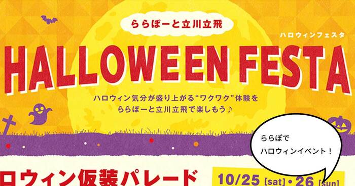 仮装パレードやおばけとの記念撮影も!10/25(土)・26(日)にららぽーと立川立飛で「ハロウィンフェスタ」が開催