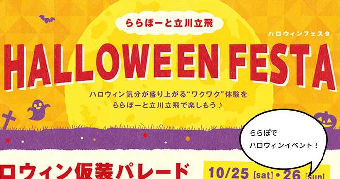 ららぽーと立川立飛では、10月25日(土)・26日(日)の2日間「ハロウィンフェスタ」が開催!