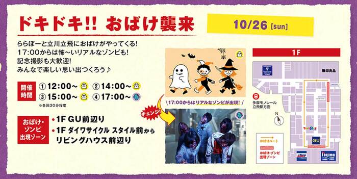 2つ目は、おばけやゾンビがららぽーと立川立飛にやって来る!?「ドキドキ!!おばけ襲来」。