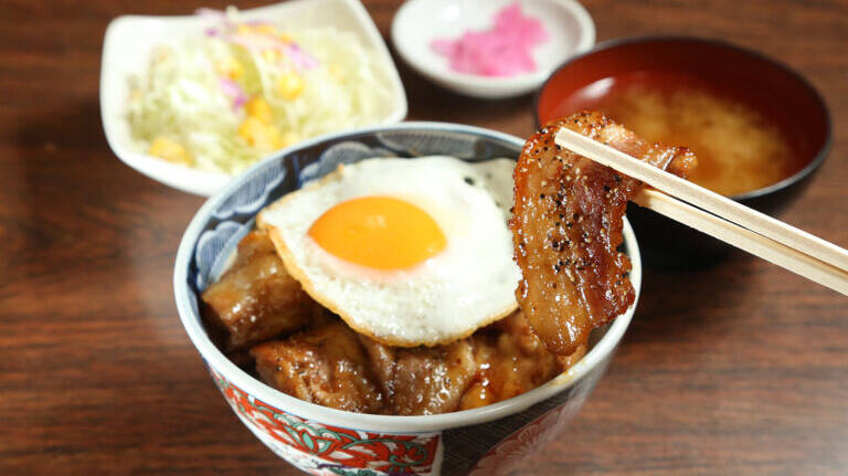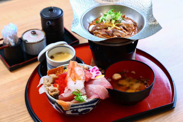 エビやマグロ、ブリを中心とした10種類以上の魚介を丼からこぼれんばかりに豪快に盛り込んだ名物海鮮丼は、ビジュアルのインパクトと確かなおいしさに驚かされます。