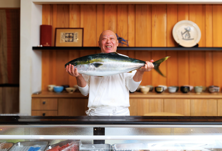 カウンター越しに黒井修社長自らが腕を振るう和楽県央店は、創業者の味と思いを直接伝える、グループの中核店です。