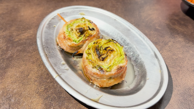 明太子に豚肉が巻かれた食べ応えのある一品です。