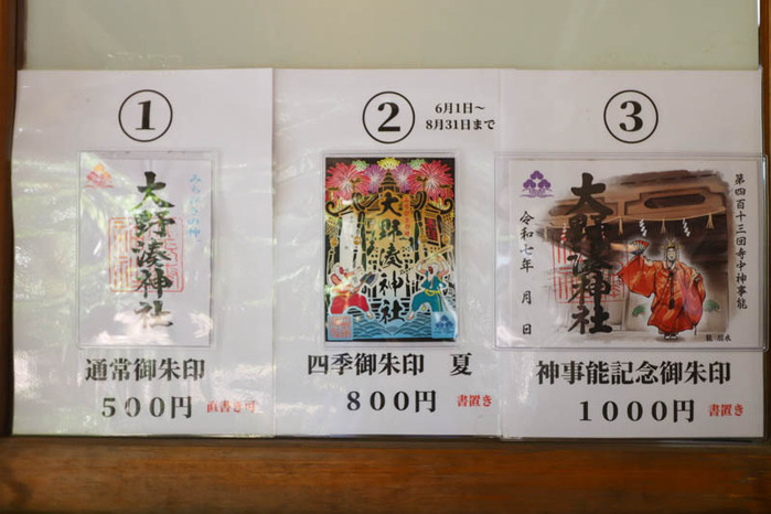 そんな大野湊神社でもらえる御朱印は、3種類。