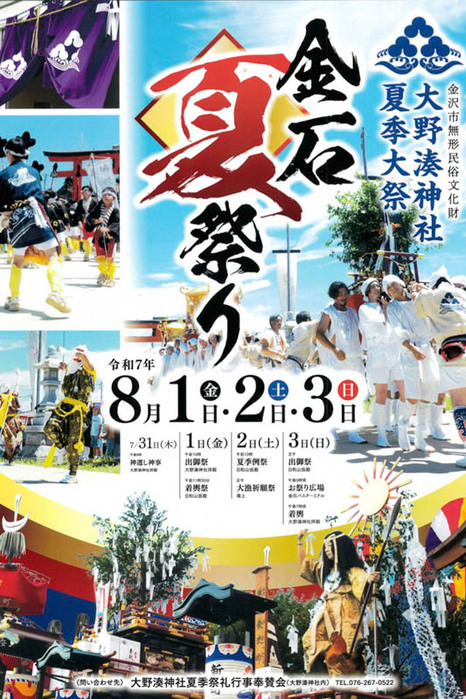 御神輿渡御や悪魔払い、獅子舞、子供奴、加賀鳶の梯子登りなど、金沢の伝統文化が凝縮された、見どころ満載の3日間です。
