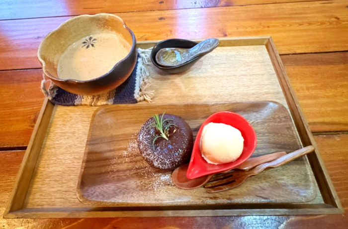 また、フォンダンショコラが秀逸!フォークで割ると、中からトロトロのチョコレートがとろけ出ます。しっとりとした生地は甘さ控えめ。チョコの風味が際立ちます。