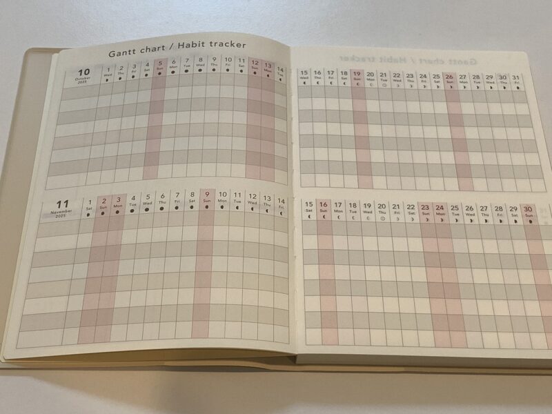 手帳は年明けから使いはじめるイメージがありますが、この手帳はあえて、10月はじまりにすることにこだわって設計されています。
