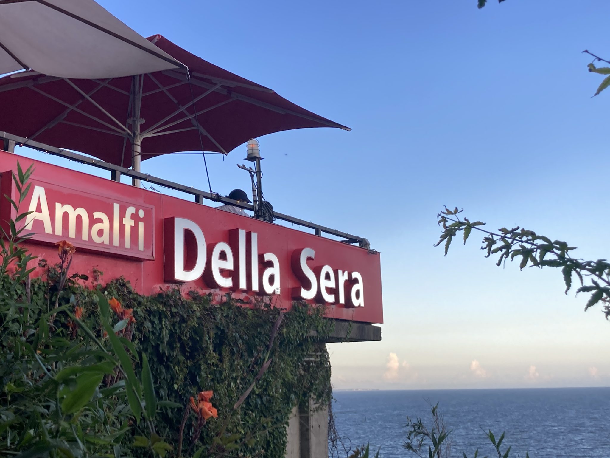 江ノ電・七里ガ浜駅から徒歩3分。線路を渡り、緑に包まれた細い階段を上ると現れるのが「Amalfi DELLA SERA」。