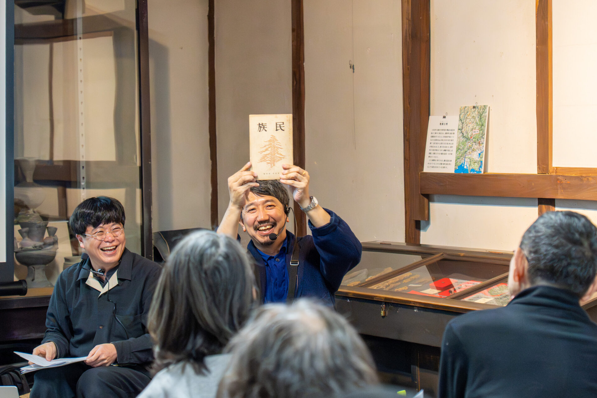 「倉敷ジャズストリート」の演奏音が戸外から流れ込み、笑い声も混じり合う中、近現代史の探求の導きとなるひとときとなりました。
