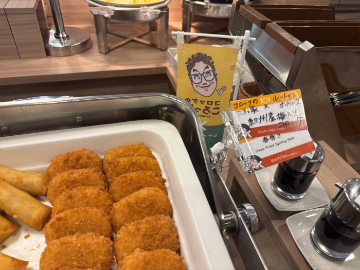 ちなみに、ルートイングループは「コロッケのころっ家」と提携しているらしく、梅味のコロッケがあっておもしろかった……。