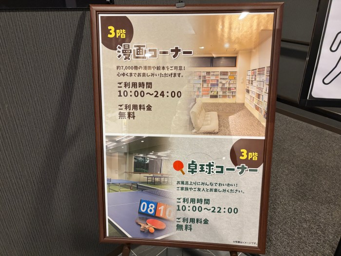 で、さらによかったのが3階にある漫画コーナーと卓球コーナー!