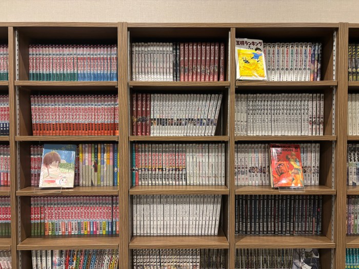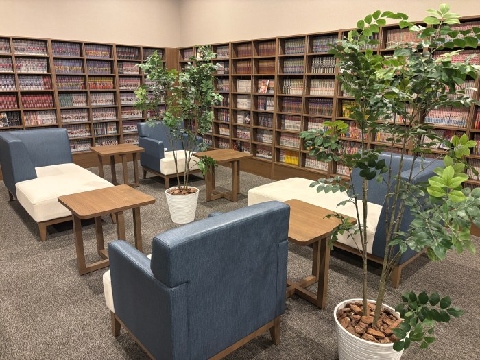 そして、個人的にめっちゃよかったのが7000冊の本を揃えたという漫画コーナー。ここ、漫画だけじゃなくて、本も置いてあるんだけど……。