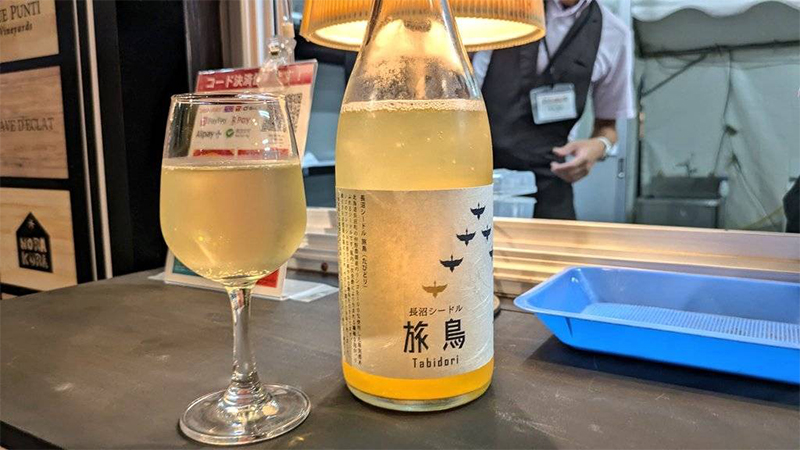 フードに合わせるお酒は東側・西側に分かれた「大通公園7丁目BAR」で購入できます。選んだのは長沼町・MAOIワイナリーの「長沼シードル 旅鳥」(900円)。すっきりした飲み口で、りんごのさわやかな風味が感じられました。